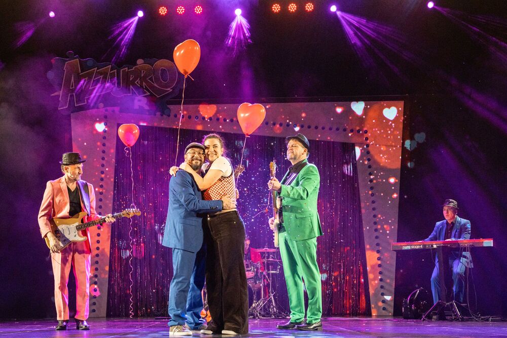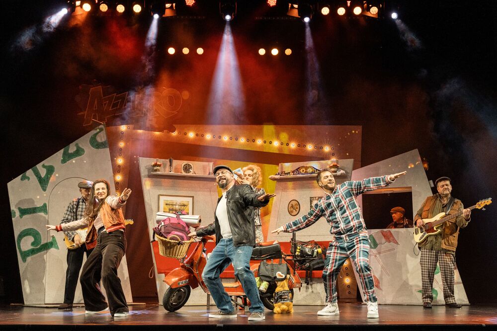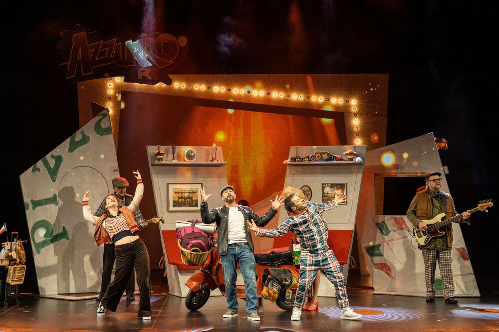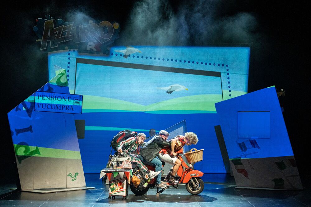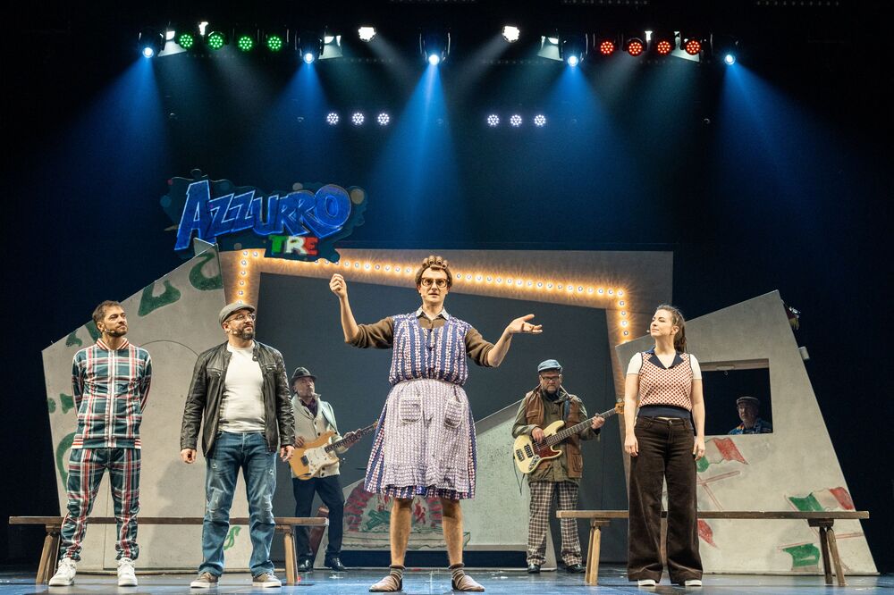 Nach dem Erfolg der Italo-Pop-Musicals „Azzurro“ und „AzzurroDue“ geht das vergnügliche Vespa-Abenteuer mit „AzzurroTre“ in die dritte Runde. Nur leider ist die Vespa in Reparatur, weswegen Rocky und Frauke mit der Deutschen Bahn ihre nächste Reise antreten müssen. Nach Bibione soll es gehen, denn dort wittert Rocky den Gewinn eines großen Konzertcastings. Frauke dagegen sieht in den heißeren Gefilden Bella Italias die Chance, einen Investor zu finden, um ihre neueste Supererfindung groß rauszubringen. Sie hat eine Kältepumpe entwickelt, mit der man das europäische Winterklima an den überhitzten Süden verkaufen kann. Dabei geraten die beiden auf ihrem wilden Abenteuertrip immer wieder in die absurdesten Situationen. Für die richtige Italo-Pop-Stimmung sorgen sie dabei natürlich auch, und zwar mit der Gutelaune-Band I Dolci Signori und Mitsing-Hits wie „Più bella cosa“, „Ti amo“ und selbstverständlich „Azzurro“.